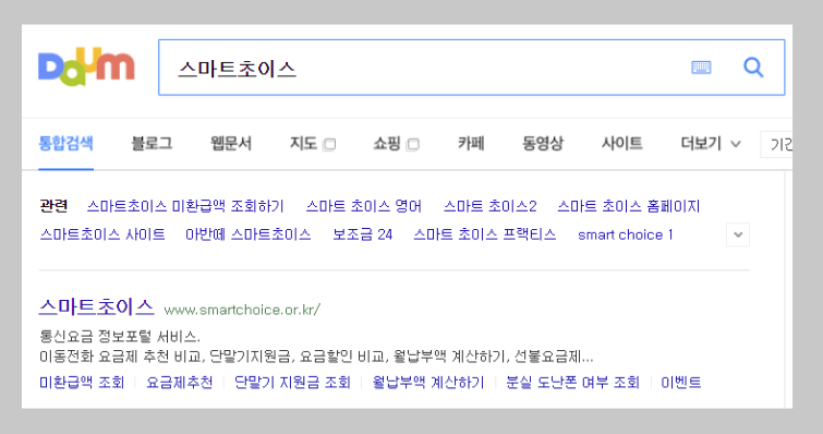 다음에서 스마트초이스라고 검색을 하면 위와 같이 나옵니다. 이것을 클릭을 하면 미환급액 조회가 가능한 스마트초이스 사이트로 들어가실 수 있습니다.