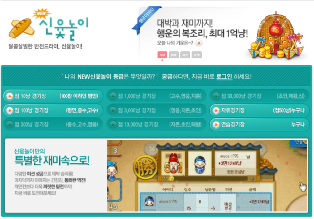 위 링크를 통하면 신 윷놀이 바로가기가 가능합니다. 그리고 로그인을 해야지 신윷놀이를 즐길 수 있겠지요.