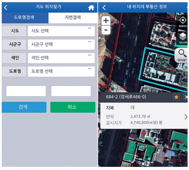 - 지번을 알지 못해도 스마트폰에 내장된 GPS를 이용해 정보를 확인할 수 있습니다.