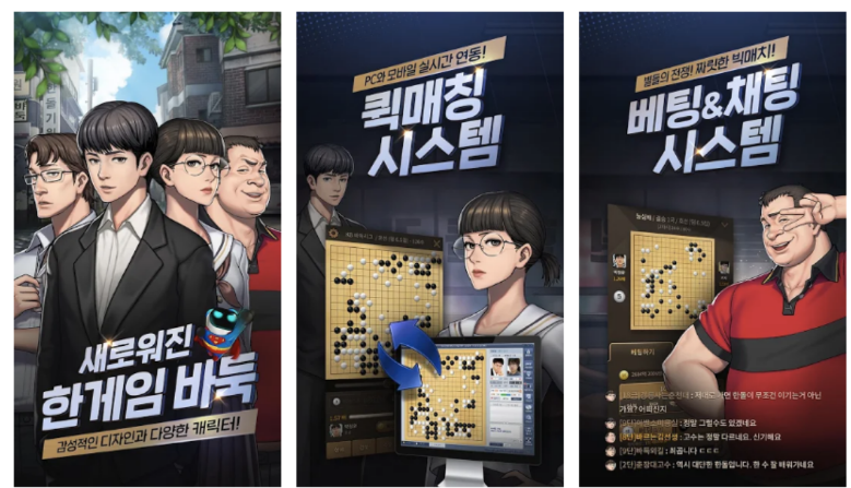한게임 바둑은 고스톱의 성공을 바탕으로 개발된 서비스입니다. 고스톱의 화려한 성공이 없었다면 바둑의 탄생 역시 있을 수 없었을 것입니다. 이 서비스는 컴퓨터로만 즐기는 것이 아닌, 안드로이드와 아이폰에서도 플레이가 가능합니다. 초기에는 PC에서만 경험할 수 있었던 서비스이지만, 바둑을 사랑하는 연령층 역시 스마트폰을 쉽게 사용하게 되면서 스마트폰 앱으로도 만나볼 수 있게 되었습니다.