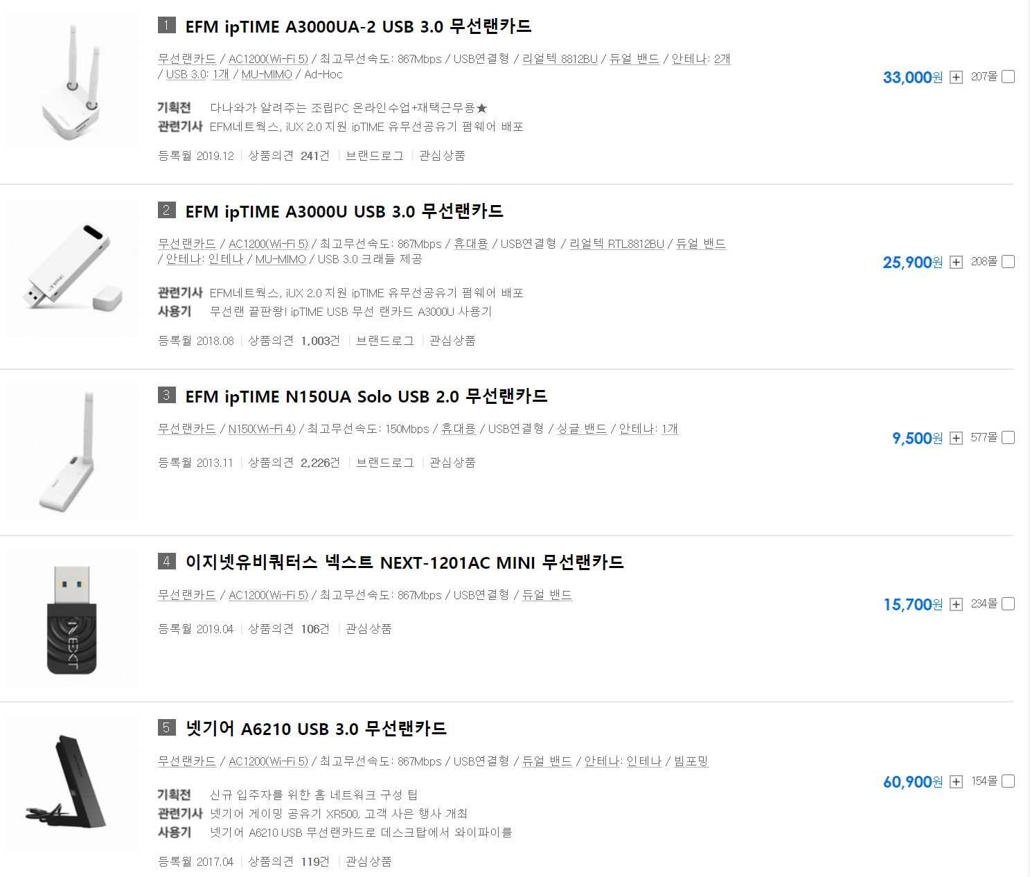 USB를 꼽아서 간단하게 와이파이 신호를 받을 수 있도록 하는 것이지요. 여기서 봐야할것은 안테나 입니다. USB 자체가 안테나가 되는 것, 안테나가 1개인것, 안테나가 2개인것이 있습니다. 편리하게 일시적으로 사용을 하기 위해서는 안테나 없는 버전이 좋습니다. 하지만 집에서 두고 쓸 경우에는 안테나가 많은것이 신호를 잘 잡고 원활한 이용이 가능합니다.
