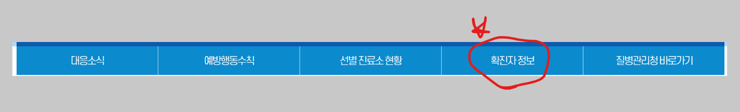 메뉴에서 네번째것을 클릭을 하면 확진자 정보를 손쉽게 확인할 수 있도록 해당 화면으로 이동을 하게 됩니다.