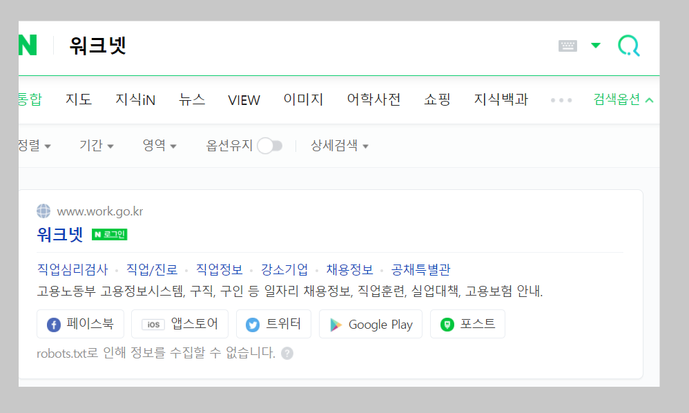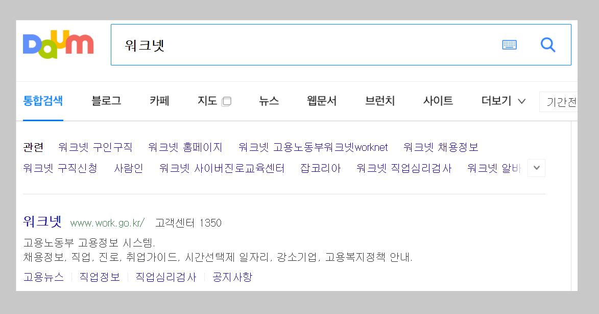 다음에서도 가장 맨 위에 검색결과가 나옵니다. 네이버는 여러 검색결과를 종합적으로 보엲줗는 반면에 워크넷은 홈페이지만 나오는 것은 조금은 아쉬운부분이라고 할 수 있습니다.