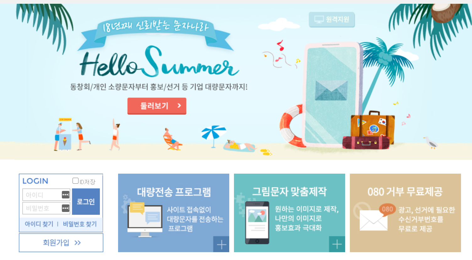 하지만 몇백건 몇천건의 문자를 보내야하는 경우에는 조금 얘기가 달라집니다. 핸드폰으로는 커버가 되지 않지요. 그럴때 문자사이트를 이용합니다. 이러한 문자사이트를 많이 이용하는 사람은 선거와 관련된 사람들일것이에요. 그 많은 문자들 비용은 대부분 문자나라와 같은 사이트에 지불하고 문자가 발송되는것 입니다.
