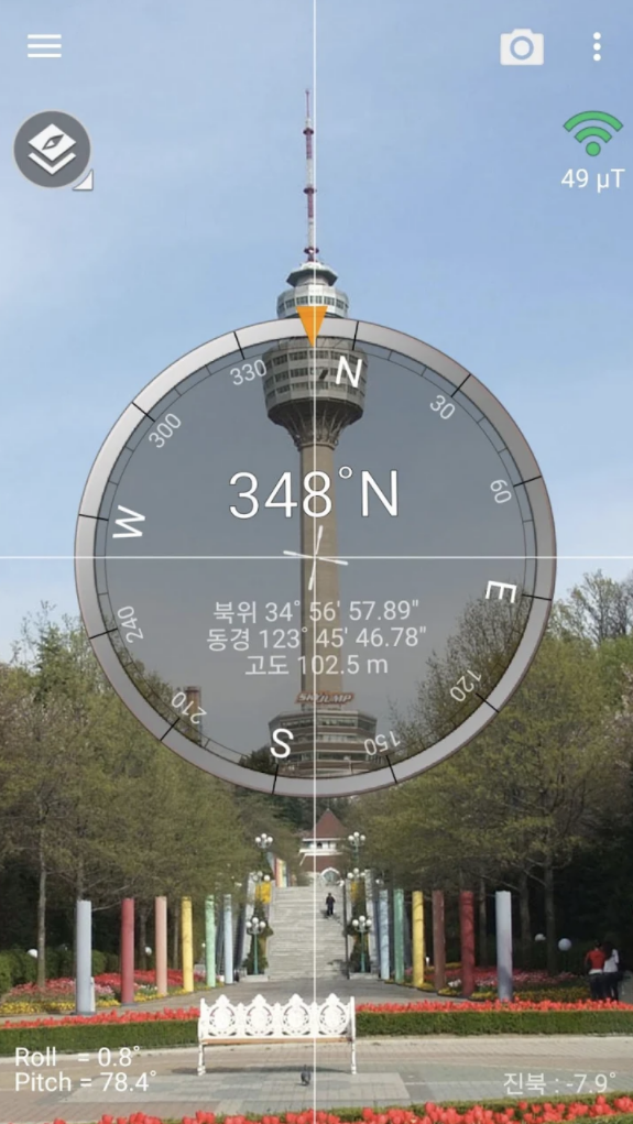 카메를 이용하여 방위를 확인할수 있습니다. 또한 금속탐지기능이용으로 센서 오류를 손쉽게 파악할수 있습니다. 그렇기 때문에 다른 나침반에 비하여 신뢰가 갑니다.