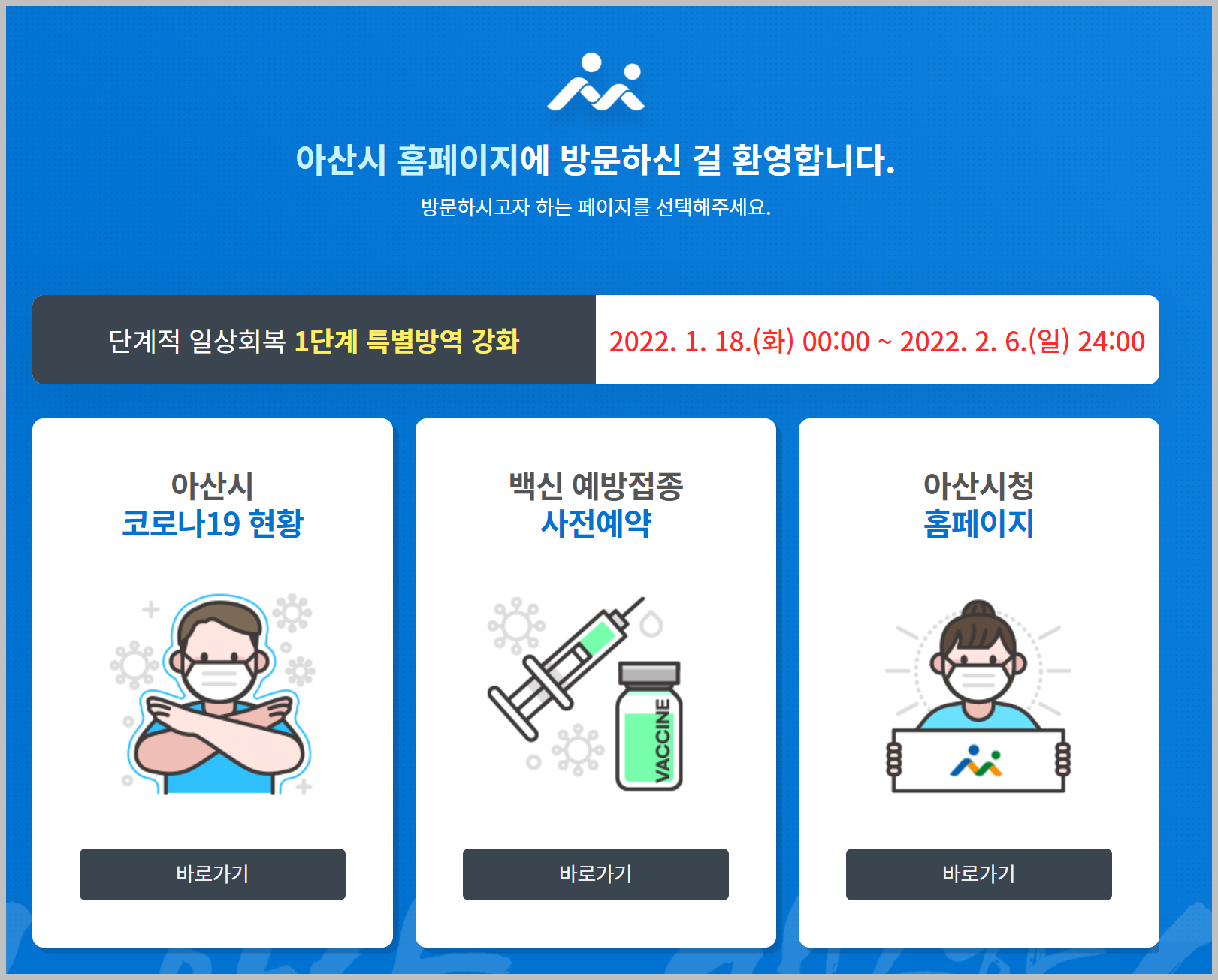 아산시청 홈페이지에서 코로나 19 정보 얻기