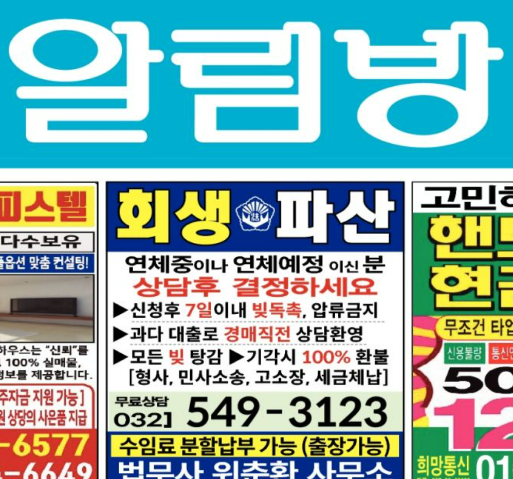 아니면 간단하게 위 링크를 클릭함으로 인천 알림방 신문을 볼 수 있습니다.