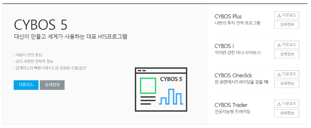 사이보스 5(CYBOS 5)역시 다양한 프로그램이 있습니다. 역시 뭘 다운로드 해야 할지 모르겠다면 CYBOS5를 다운로드 하면됩니다.